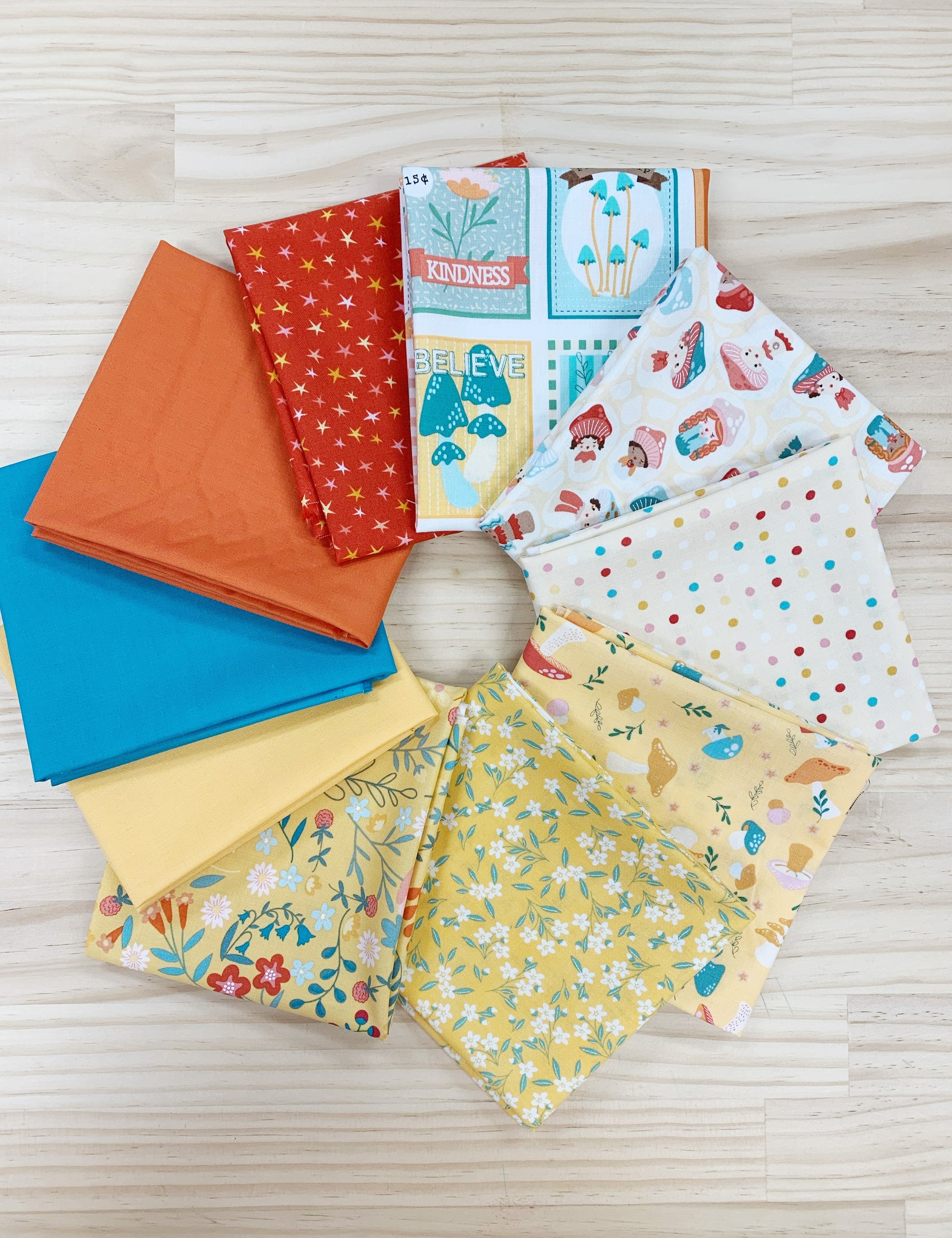 Featuring delightful mushrooms, delicate florals, and bold solids, this bundle adds a fun and whimsical tone to your fabric stash. Perfect for beginner quilters or seasoned makers, these high-quality quilting cottons are ready to inspire your next quilt, table runner, or sewing room project.
